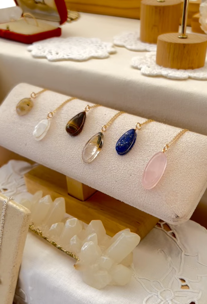 Every gemstone and freshwater pearl is selected with intention, chosen for its unique energy, its quiet power, and the story it already holds. Gold, silver, and natural materials are shaped slowly and purposefully, honoring their origin and transforming them into amulet of grounding, protection, and self-expression.